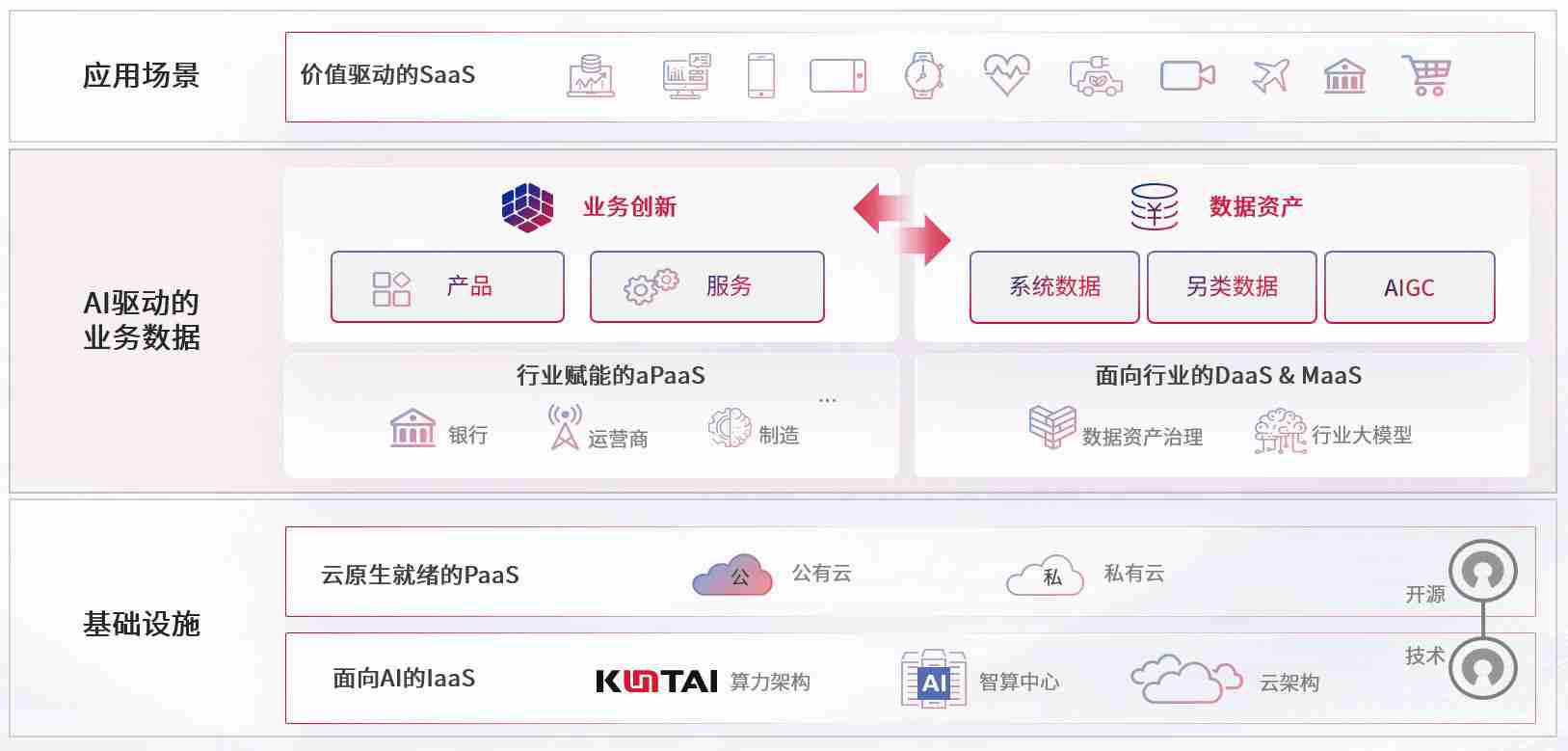 数字时代,,围绕企业数字化转型的关键要素,,尊龙集团数码开创性的提出数云融合战略和技术体系框架,,,,着力在云原生、、数字原生、、、、AI原生和信创产业上架构产品和服务能力,,为处在不同数字化转型阶段的快消零售、、汽车、、、、金融、、医疗、、、政企、、、教育、、、、运营商等行业客户提供泛在的敏捷IT能力和融合的数据驱动能力,,构建跨界融合创新的数字业务场景和新业务模式,,,,助力企业级客户建立面向未来的核心能力和竞争优势,,,,全面推动社会的数字化、、智能化转型升级。。